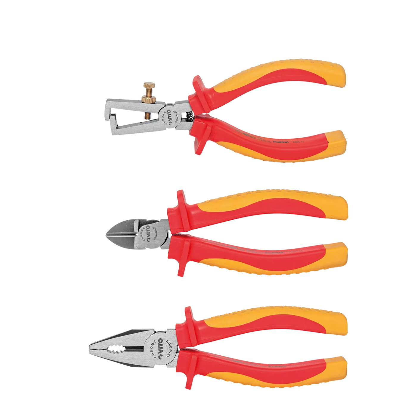Juego de 3 Alicates VDE 1000V | Universal, Corte Lateral y Pelacables con Mango Aislado