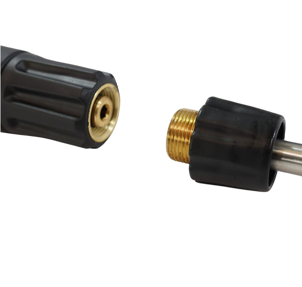 Conexión rápida en pistola, lanzas y manguera para montar y cambiar accesorios sin herramientas.