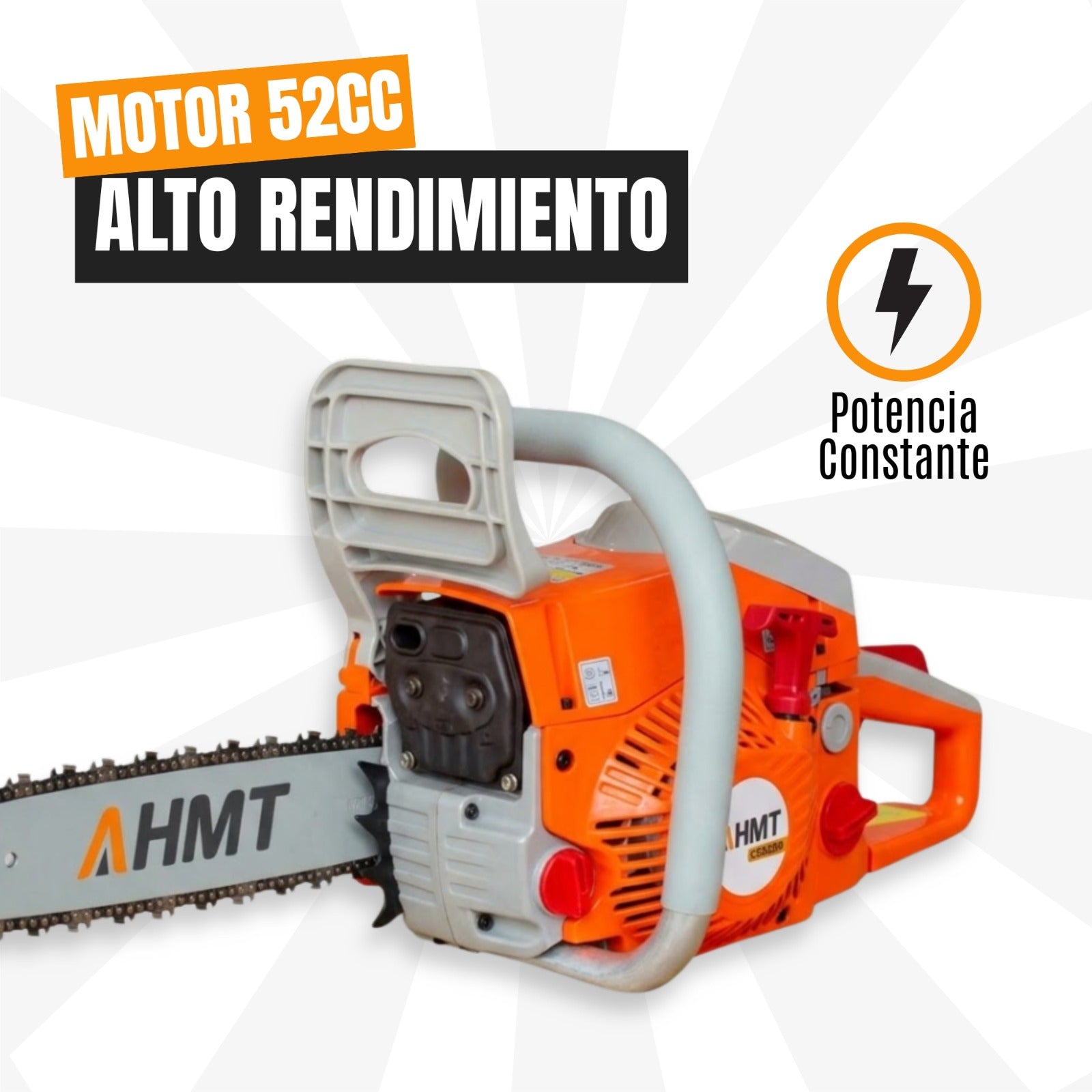 La motosierra gasolina HMT Tools CS-5200 de 52cc está diseñada para ofrecer potencia, control y fiabilidad en trabajos de corte exigentes. Su motor de alto rendimiento permite cortar madera y preparar leña con rapidez, reduciendo esfuerzo y tiempo de trabajo.