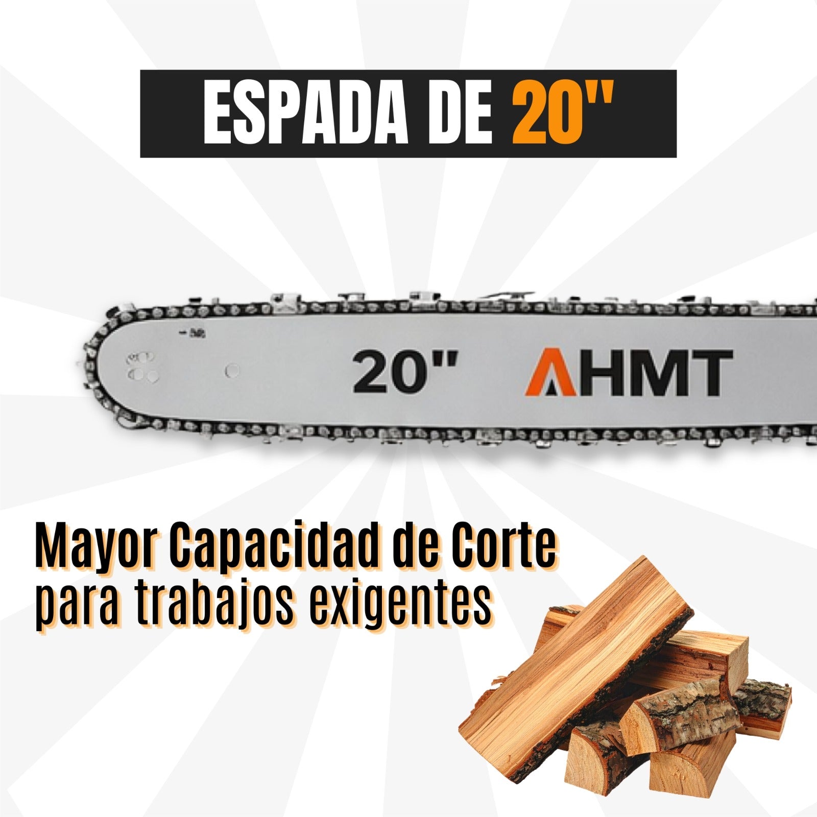Equipada con espada de 20 pulgadas y una velocidad de hasta 7500 RPM, esta motosierra proporciona cortes precisos y potentes, ideal para mantenimiento de fincas, trabajos de jardín o preparación de leña.